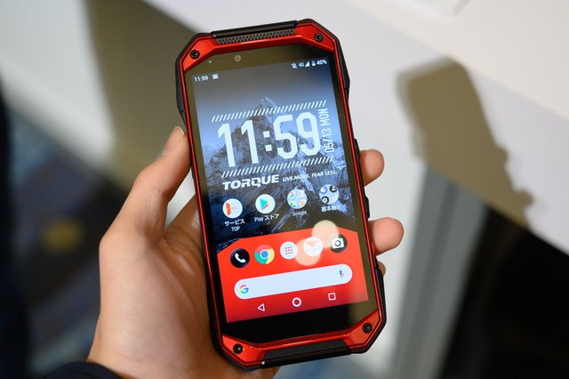 こだわりに応えるとするモデルからは、京セラから4世代目となるタフネススマートフォン「TORQUE G04」が登場。シリーズ最強の堅牢性・耐久性を実現したとしており、コンクリートに落下させるなど厳しい試験をクリアしたという。海水において水深2.0mに1時間耐えられるだけでなく、温水のシャワーにも対応する。また手ブレと暗所に強い約2,400画素のカメラを備えたという。