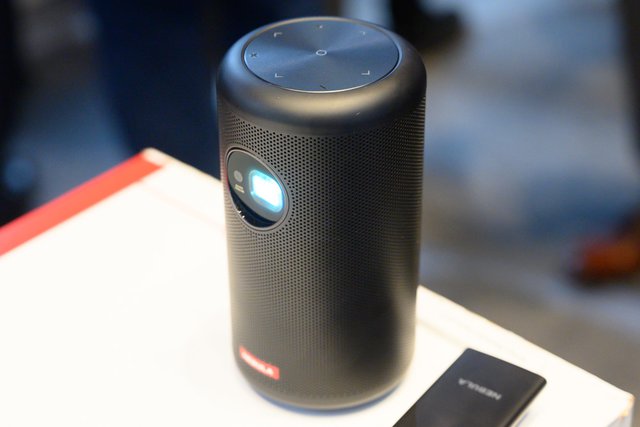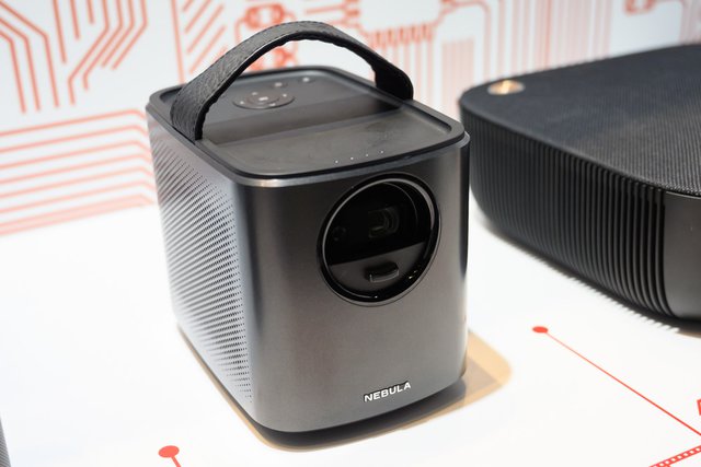 プロジェクターを手がけるNEBULAからは3製品が展示。まず “世界初のAndroid TV搭載モバイルプロジェクター” を謳う「Capsule II」は、200ANSIルーメンの明るさと1,280×720の解像度に対応するモバイルプロジェクターとなる。