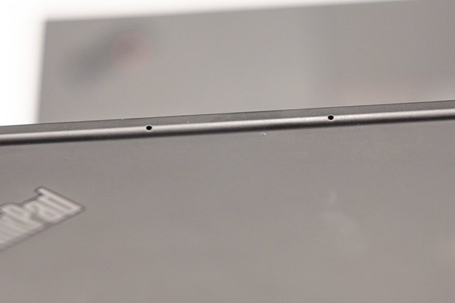 会議のためのマイクは、筐体液晶部の上面に搭載する。従来はWEBカメラの左右に設置されていたため、PC前の使用者の声を拾う想定だったが、上向きの配置になったことにより、360度の全方向から録音できるようになった。感度も2倍にになっている。