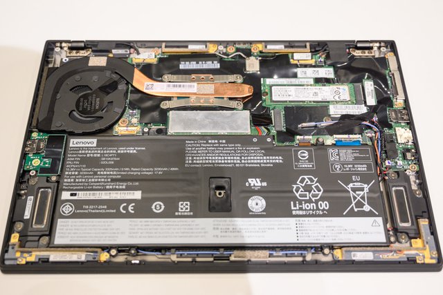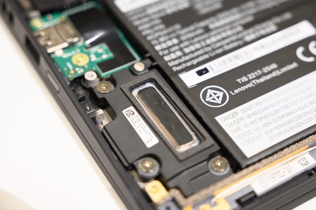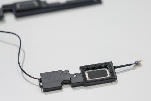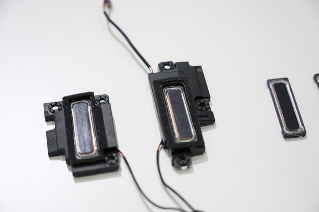 スピーカーは4つ搭載されており、トゥイーターがキーボード上のヒンジ近く、ウーファーが下部のパームレスト付近に位置する。前モデルよりも筐体が薄型化したにもかかわらず、4つのユニットを収めるのは非常に苦労したとのこと。0.1mm単位でパーツを調整し、さらにパズルのように他パーツと組み合わされ、配置したという。