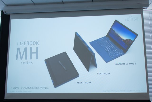 また、上位モデルMH75/D2のみ2in1構造を採用し、タブレットモード/テントモードでも使用でき、タッチペンも付属する。