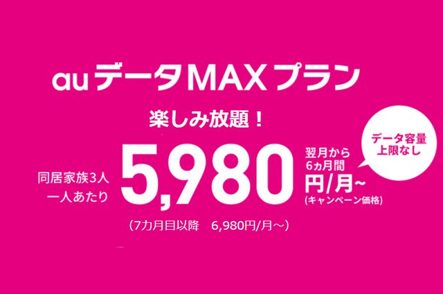 au、データ容量上限無し「auデータMAXプラン」を7月26日から提供開始。6か月間1,000円割引キャンペーンも