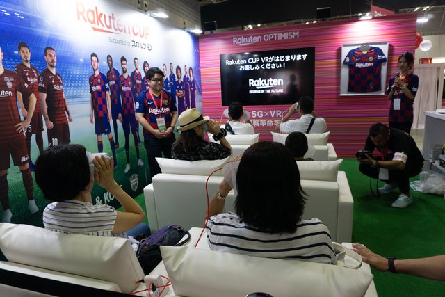 5G時代のスポーツ観戦と銘打たれた「Rakuten CUP VR」は、楽天が主催するRakuten CUPのゴールハイライトを8K VRで視聴できる体験ブース。5Gだからこそ可能な高画質で遅延のないリアルタイムの360度映像によって、会場にいる臨場感が離れた場所からでも味わえるとアピールされた。