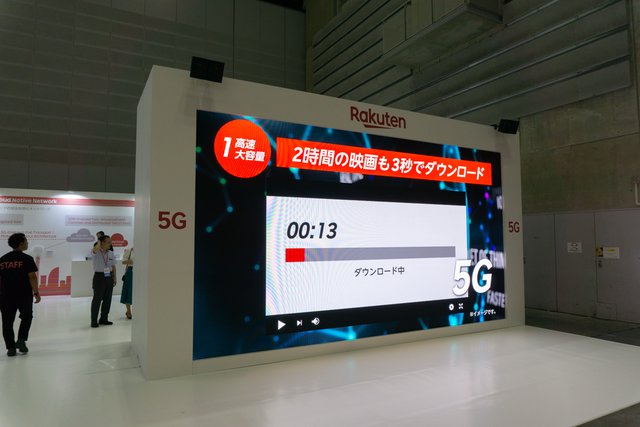 2019年10月から4GでのMNO(移動体通信)事業に参入を予定する楽天。さらに2020年6月からは5Gの商用サービス提供を、2021年3月には全都道府県での5Gサービス提供を予定している。「近未来体験エリア」では、5Gを含む楽天のMNO事業の技術を紹介から、5Gによって実現可能になるエンターテインメントをいち早く体験できるブースまでが用意された。