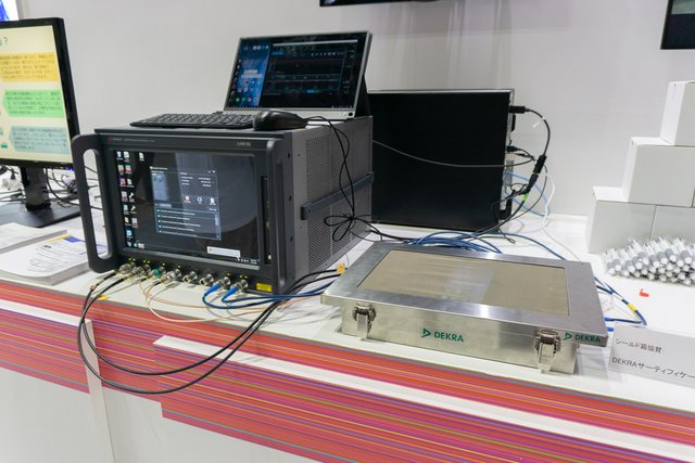 OPPOなどが出展するブースでは、すでに海外で発売されている5G対応スマートフォン「OPPO Reno 5G」が出展。5Gのテストプラットフォームを手がけるKEYSIGHT TECHNOLOGYの5G基地局シミュレーターと組み合わせ、5Gスループットのデモンストレーションを行った。