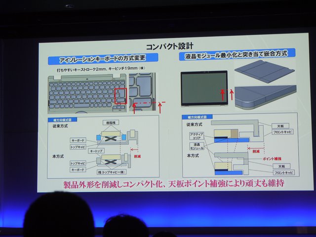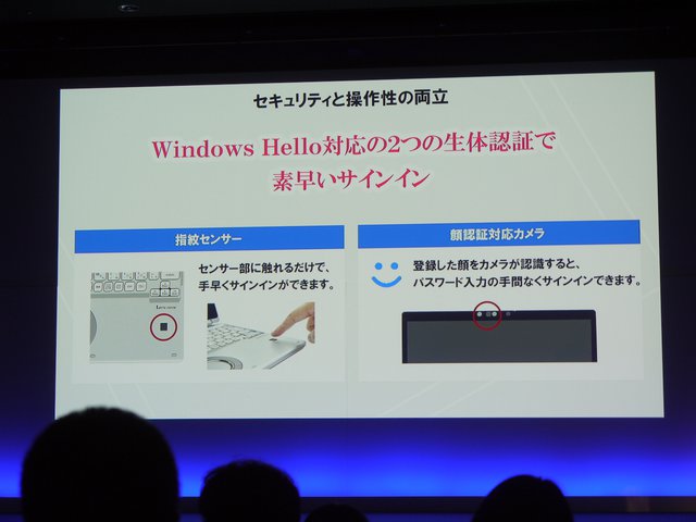 セキュリティ面では2種類の生体認証デバイスを搭載。指紋センサーと顔認証対応カメラで素早くサインインする。コンパクト設計を実現したのはキーボードの方式変更。打ちやすいキーストローク2mmを採用し、従来方式のキートップまわりの樹脂桟を排除して桟とトップキャビを一体化、スペースを削減した。また吸気と排気を最適化して放熱効率の高い空気の流れを実現して放熱性能も向上させた。