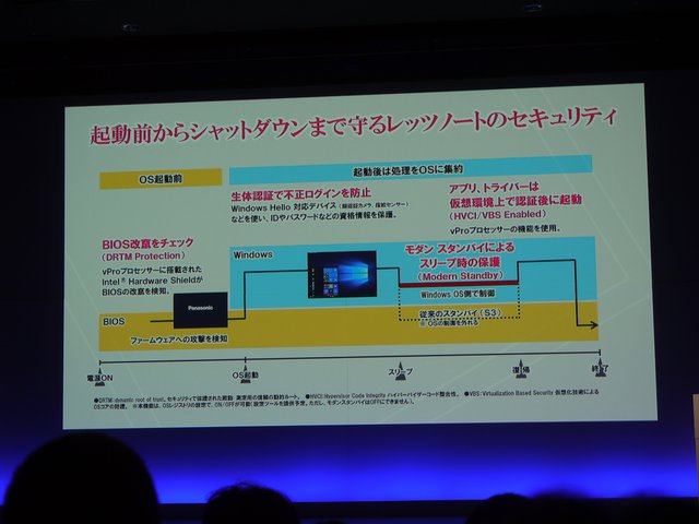 国内のモバイルPC市場について「堅調」との見方を示し、レッツノートについては2014年度に国内で28万台、2017年度および2018年度はそれぞれ42万台と1.5倍の伸長だとして「モバイルワークに確実に寄与している」と力を込める。ハードのみならず、昨今ではさまざまなアプリケーションも連携させており、「ハードとサービスで業務プロセスの改革に貢献し、働き方改革を後押ししている」と語った。
