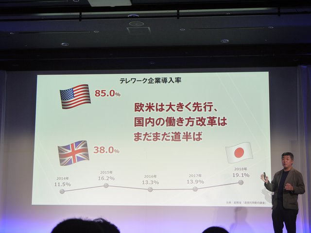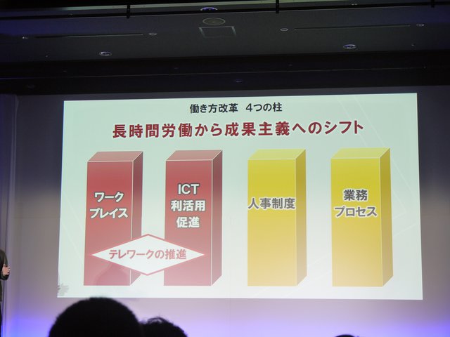 発表会の冒頭に登壇したパナソニック(株)コネクティッドソリューションズ社 モバイルソリューションズ事業部 事業部長 坂元寛明氏は、新製品のコンセプトを昨今注目される「働き方改革」のキモであるテレワークを推進するものと説明。「日本でこれまで美徳とされた長時間労働ではなく、短時間で成果を上げていくのがこれからの成功戦略のカルチャーとマインド。どこでも働けるテレワークはその根幹をなすものであり、台風や地震など災害の折にも大きなメリット」と語る。海外では当たり前となっているテレワーク、ホームオフィスの概念だが、日本ではまだまだ進んでいないと指摘。レッツノートの新製品がその後押しとなると自信を見せる。