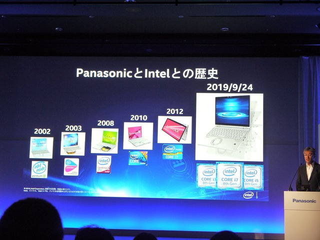 発表会には特別ゲストとして、インテル(株)日本法人代表取締役社長 鈴木国正氏も登壇し、働き方の改革とインテルがもたらす変革と題してプレゼンを行った。インテルとパナソニックは2002年にインテルCentrinoが搭載されたレッツノートR1シリーズ以来タッグを組み、PCの性能の向上を図ってきたという。