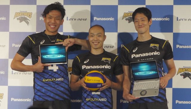 発表会には、パナソニックがスポンサーを務めるバレーボールチーム「パナソニック パンサーズ」の深津英臣選手、大竹壱青選手、渡辺奏吾選手も登場。レッツノート同様に速さ、強さ、タフさをアピールし、10月26日からスタートするバレーボール大会「Vリーグ」での活躍も期待されるものとなった。