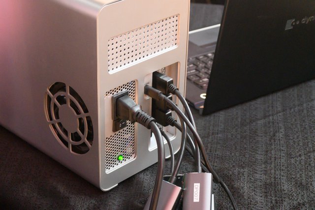 ディスプレイ、ノートPC、外付けGPUの3製品から成り立っており、ノートPCは15.6インチで6コアのインテル第10世代CPUを搭載する。また外付けGPUはThunderbolt3によってノートPCと接続するかたちで、内部にはグラフィックボードとしてNVIDIA Quadro RTX4000を搭載。NVIDIAの技術である「Mosaic」を使用し、4本のHDMIケーブルで8K映像を伝送する。