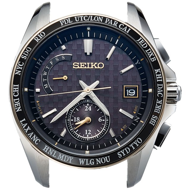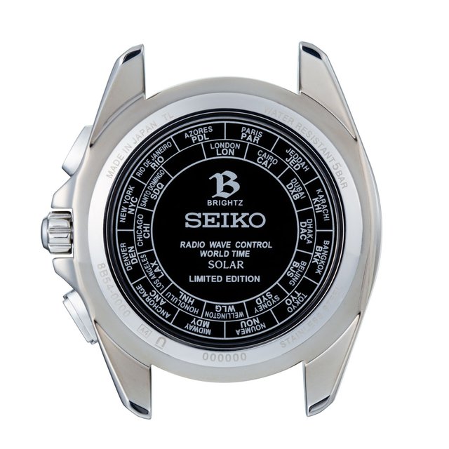 また、時差のある二つの地域の時間を同時に表示するデュアルタイム表示機能を同モデルの電波ソーラー時計として初めて搭載。日本(JJY40/JJY60)、中国(BPC)、アメリカ(WWVB)の3エリア、4つの標準電波に対応し、うち2つを中央の時計と6時位置のサブダイヤルで見ることができる。