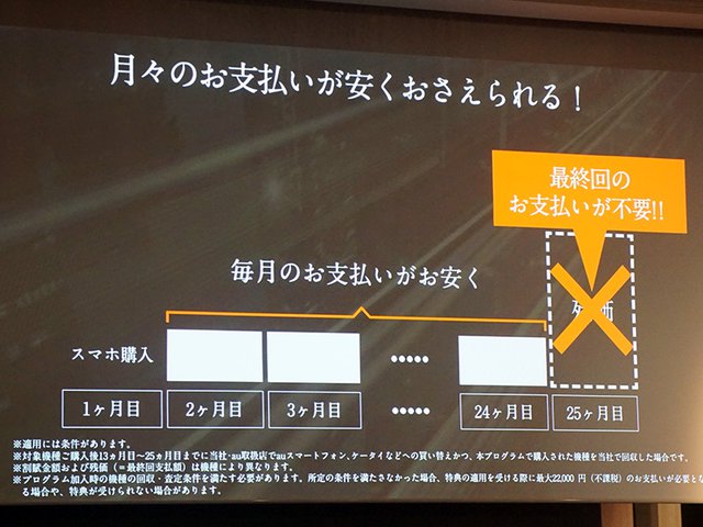 なお、前述の通り本プログラム利用時の残価金額は機種ごとに異なるが、この金額は「アップグレードプログラムなどでこれまで培ってきたノウハウを基に算出する」(KDDI株式会社 コンシューマ事業企画本部 副本部長 松田浩路氏)という。