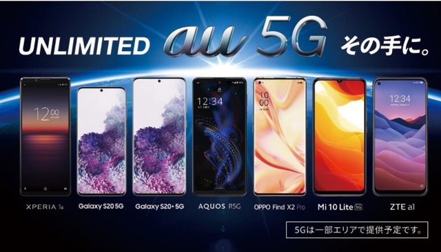 au、5G対応スマートフォン7機種を発表。OPPO/ZTE/Xiaomi端末の取り扱いも