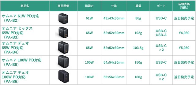 AUKEY、“世界最小”GaN採用USB PD充電器「Omnia」シリーズ5機種で日本へ本格進出