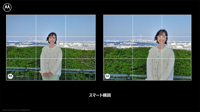 写真撮影の機能として、AIエンジンを活用した各種モードも搭載。スマート構図では3分割法を活用したクロップを自動的に行えるほか、指定した色を残したモノクロ撮影ができるスポットカラー、顔を認識して全員が笑った写真を撮影できるオートスマイルキャプチャーも備える。