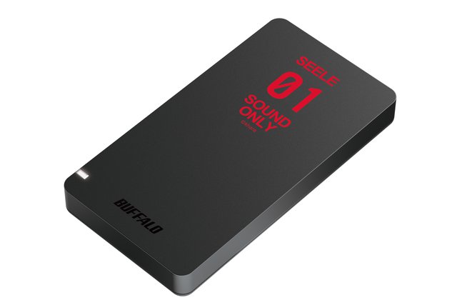 ポータブルSSD 480GBタイプ『SEELEモデル』には、作中に登場する秘密結社・ゼーレのモノリスをイメージしたデザインを採用。5.0W×1.09H×9.5Dcmという名刺サイズのコンパクトさながら、リード約530MB/sの高速ファイル転送を実現。本製品からのOS起動も可能とのこと。質量は約52g。