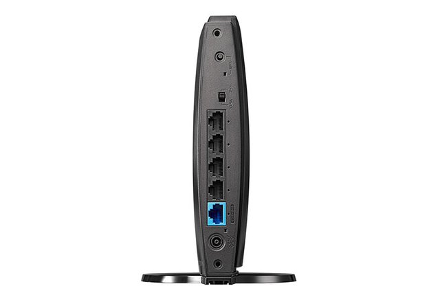 縦横置き量対応で、外形寸法(縦置き状態/スタンド含む、突起部含まず)は、約180W×186H×120Dmm、質量は約450g (スタンド含む)。インターネットポートはRJ-45×1ポート、LANはRJ-45×4ポートを装備する。