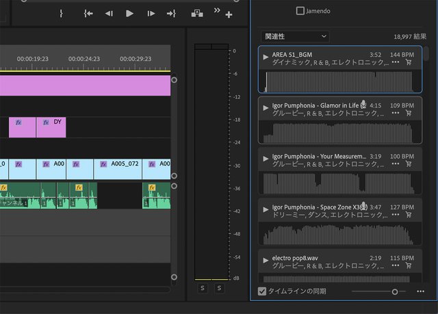 Premiere Proについては、複数人でのプロジェクト管理機能に加え、Stock Audioへの対応を発表。ショートムービーにBGMをつけたい場合などに、3万5,000点以上のロイヤリティフリーの音源を使うことができる。ムード(ロマンチックなど)、ジャンル(ロックなど)、テンポ、長さ、ヴォーカルの有無など、いくつかの条件で絞り込みを行い、適切なサウンドを探すことができる。