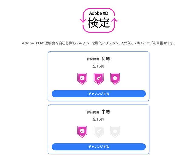 ウエブ制作ツール「Adobe XD」については、日本独自の機能として「XD検定」を6月10日より正式スタートさせている。ブラウザ上でXDを「どこまで理解できているか」を判定する自己診断ツールで、無料で利用でき、5分程度で終了する。現在初級、中級、上級の3クラスが公開されている。