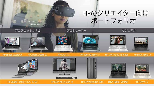 (株)日本HPは、VRヘッドセット「HP Reverb G2 VR Headset」を9月上旬に発売する。同社直販サイトでの販売価格は59,800円(税抜/以下同)。またクリエイターPC新モデルとして、プロ向けモデル「ZBook G7 シリーズ」「ZBook Firefly シリーズ」および個人向けモデル「ENVYシリーズ」を7月上旬以降、順次発売する。