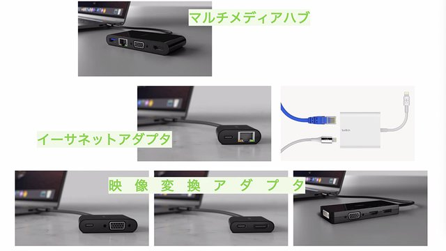 マルチメディアハブやイーサネットアダプター、映像変換アダプタは、いずれもPD対応のUSB-Cポートを搭載。映像出力や有線LAN接続などを行いながら、最大60W端末の充電が行える。