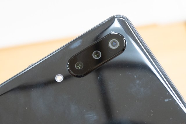 カメラは3眼構成となり、標準カメラは同社フラッグシップモデル同等の約4,800万画素を採用。高速オートフォーカス「新ハイブリッドAF」にも対応する。レンズの明るさはF1.8で、35mm判換算の焦点距離は26mm相当。