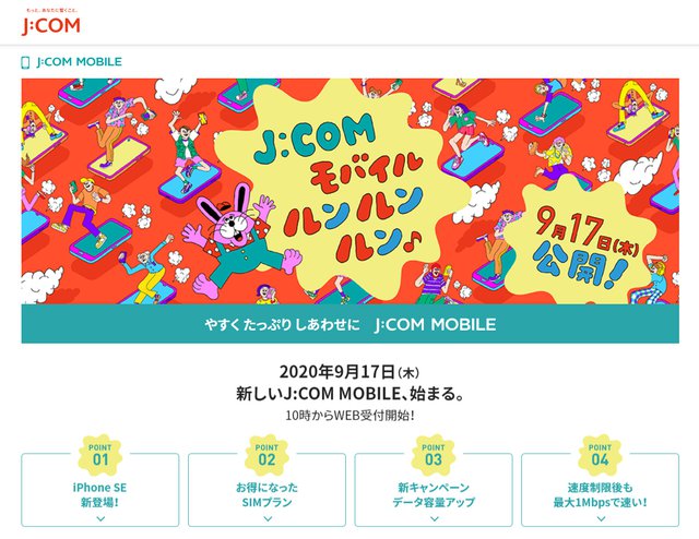 J:COMモバイル、料金据え置きでギガ増量。大容量プランは超過後速度制限が1Mbpsに