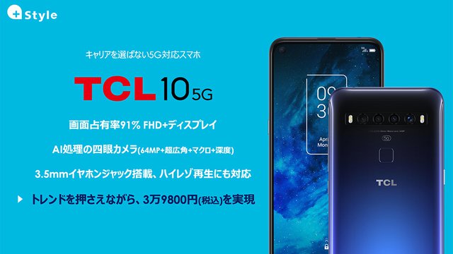 +Style、SIMフリー特設サイト開設。約4万円の5Gスマホ「TCL 10 5G」を独占先行販売
