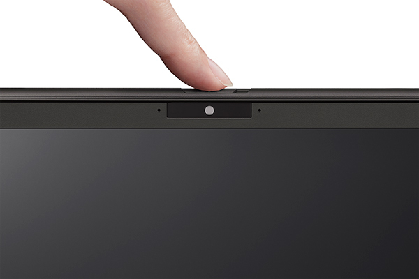 14.0型のワイドディスプレイはフルHD、4Kから選択可能。そのほか、共通の仕様として、ディスプレイ上部に装備されたWebカメラには、プライバシー保護のためスライド式シャッターを備える。