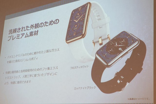 また、スマートウォッチ「HUAWEI WATCH FIT」の新バリエーション「HUAWEI WATCH FIT Elegant Edition」を4月23日に発売する。フロスティホワイトとミッドナイトブラックの2色で、価格はオープンだが、税込19,800円前後での実売が予想される。