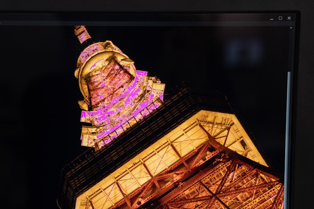 卓上など限られたスペースにも設置できるサイズとして32型を採用。使用時に身を乗り出すことで、8K解像度による細部の確認が行えるとしている。画素密度は約280dpiとなり、これは写真プリントサービスの300dpiに迫る水準だ。