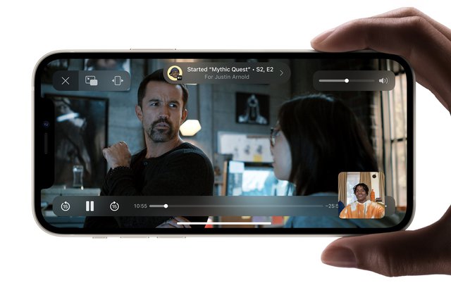 「シェアプレイ」機能も追加される。文字通り、FaceTimeでコンテンツを共有し、一緒に楽しめる機能。映画や音楽などのコンテンツを、同時に楽しめる。さらに、Apple TVと組み合わせて大画面でコンテンツ共有しながら会話する、といった使い方も可能だ。