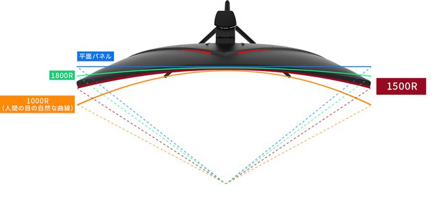 540シリーズは、1,500Rの湾曲パネルを採用する曲面型ゲーミングモニターとなっている。こちらで採用する1,500Rの湾曲は、人間の目の自然な曲線(1,000R)にほど近く、人の目への負担や疲労が蓄積されにくいものだと同社は説明している。