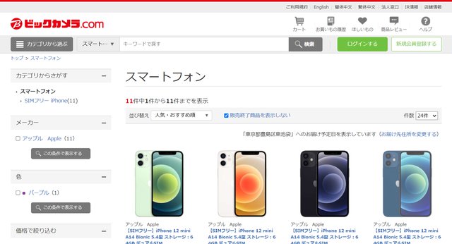 ビックカメラ、SIMフリー「iPhone 12」「iPhone 12 mini」を割引販売中