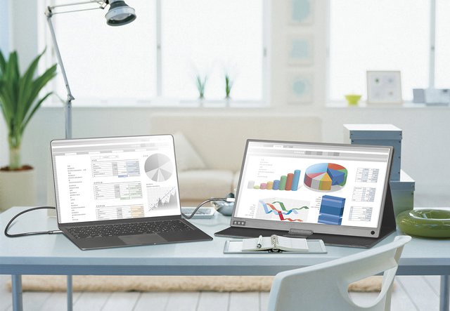 15.6インチのフルHDパネルを搭載するモバイルモニター。USB-C/mini HDMIの入力端子を備えており、PCやスマホ、ゲーム機などと接続して幅広い用途に使用できるという。
