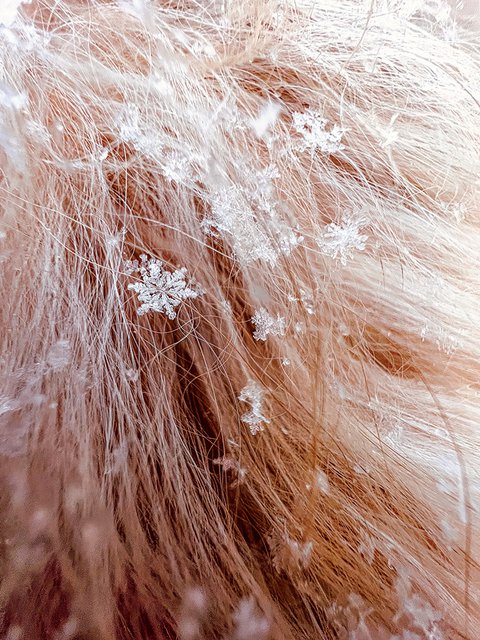愛犬を連れてニューヨークのリバーサイドパークを散歩していた時にシャッターチャンスと遭遇。「初雪にはしゃいでいた愛犬のハチミツ色の毛と、雪の結晶による美しい自然の幾何学模様を写真に収めました」(Reeves氏)
