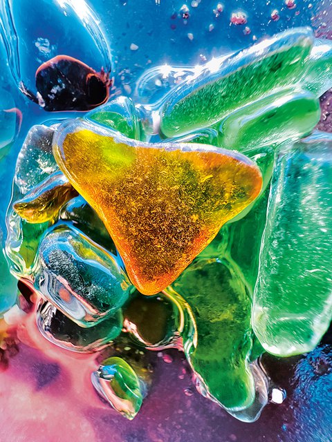 何千キロも海を渡って浜辺に打ち上げられたガラスの破片を撮影。「真ん中にある琥珀色のかけらの質感に惹かれました。ここから何か不思議なことが起きそうな予感がします」(Cassanelli氏)