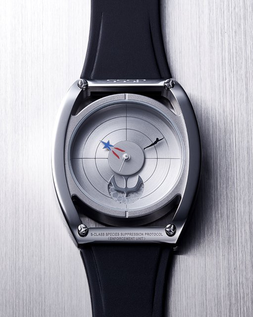 さらに、神永新二がウルトラマンに変身する際に使用する「ベーターカプセル」の波紋状のボタンモチーフを文字盤や竜頭にデザイン。竜頭はこのベーターカプセルの構造を模しており、普段は竜頭がフラットになるよう収納されているが、時間の調整時に竜頭を引き出して使用するように設計された。