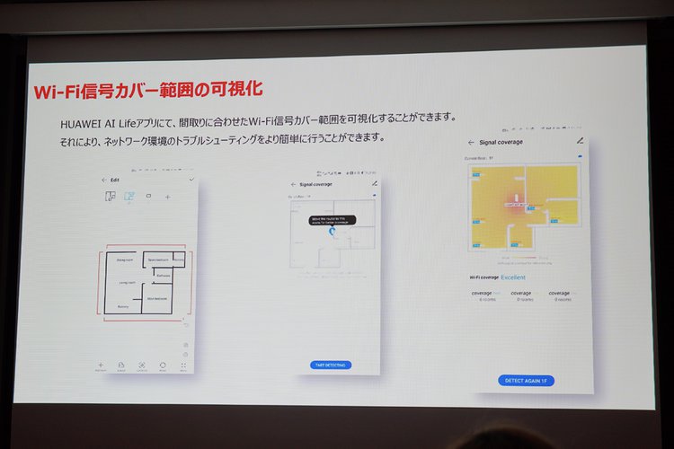 4基のギガビットイーサネットポートを搭載し、いずれもWAN/LANを自動で判別するため接続時の負担を軽減できるとしている。また、専用アプリ「HUAWEI AI Life」を利用すると、宅内のWi-Fi信号が届いている範囲をビジュアルで確認したり、トラブルが発生した際の原因究明や対策をより簡単に行うことができるとしている。