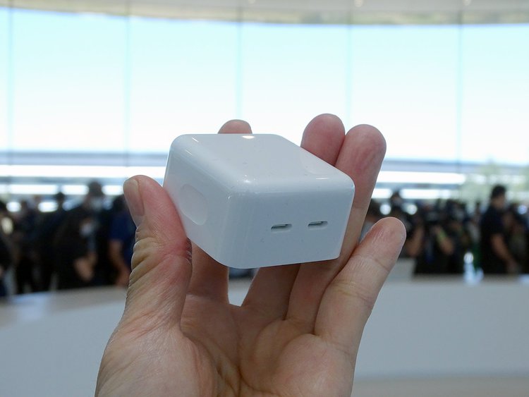 パッケージに同梱する35Wの電源アダプターは2つのUSB-Cポートを備える。MacとiPhoneなど2つのデバイスを一度に充電できる。MacBook Airは67W以上のUSB-C電源アダプタを使えば、30分で最大50パーセントまで内蔵バッテリーをチャージできる高速充電にも対応した。