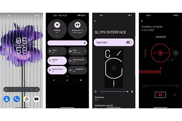 OSにはAndroid 12をベースに、「強みを厳選して必要機能だけを揃えた」とする独自のNothing OSを搭載。これにより高速かつスムーズな操作体験を提供するという。ハード/ソフトともに同一デザイン言語で統一され、特別に作られたウィジェットやフォント、サウンド、壁紙を搭載する。