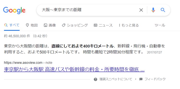 ここでいう強調スニペットとは、Google検索結果で「ユーザーの探している情報が見つけやすくなると判断された場合」に、「実際にリンクをクリックしたときの内容やページに関する説明」として表示されるもの。標準の形式とは異なり、ページのリンクより先にそのページの内容を記述した「スニペット」(説明文)が現れる仕組みだ。
