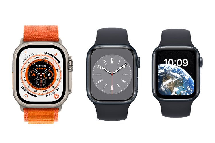 「Apple Watch Series 8」(GPS+Cellularモデル)は、41mmサイズが82,080円(月1,710円×48回)から、45mmサイズが87,360円(月1,820円×48回)から。