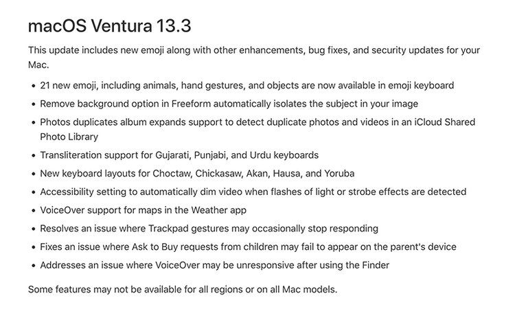 アップル、「macOS Ventura 13.3」リリース。21の絵文字追加、トラックパッド不具合修正も