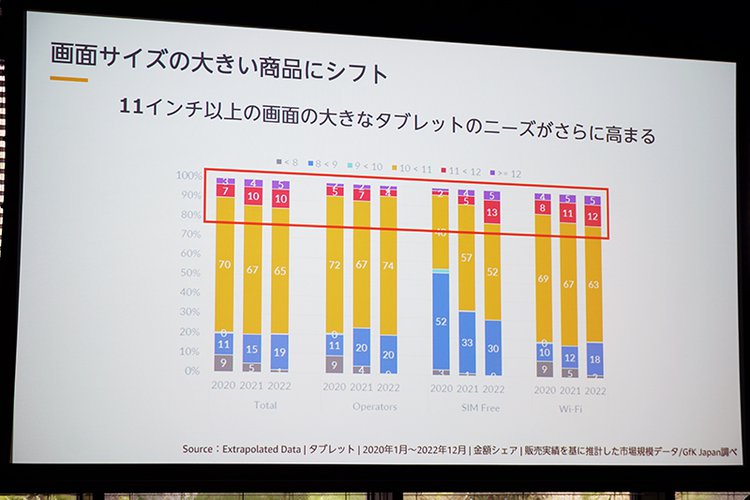 10インチ以上の大画面タブレットのニーズが約80%を占め、特に11インチ以上のモデルは、2020年から2022年にかけて約10〜15%伸長していると指摘。「大画面タブレットのニーズは今後も高まっていくものと想定される」と本機の開発に至った背景を説明した。