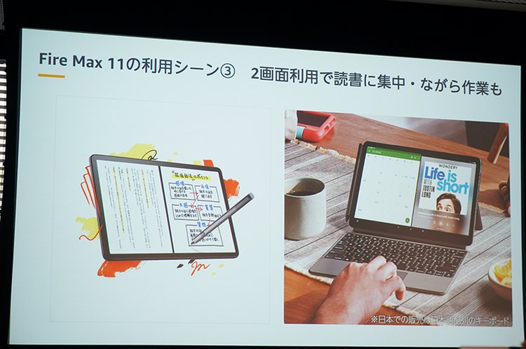 「Fire Max 11」について、「これまで以上にユーザーに喜んでもらうことを目指した、Fireタブレットの新たなシグネチャーとなるモデル。サービスやコンテンツの使いやすさをさらに追求し、動画視聴や読書体験に加え、クリエイティブにも使えるタブレット」とアピールした。