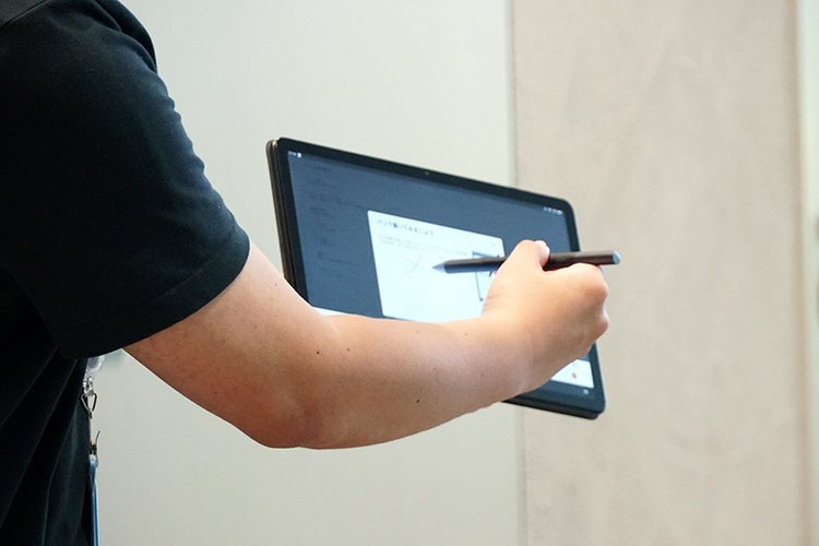 Fire Max 11専用アクセサリー商品の紹介や、新たに搭載された指紋センサー機能、書かれた文字をテキストに自動変換する「Write to Type機能」のデモンストレーションも実施され、本機の市場導入へ向けて意気込みを示した。