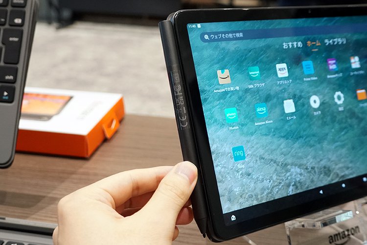 また、専用アクセサリーの「スタイラスペン」「キーボード付きカバー」も同時発売する。価格はスタイラスペンが4,980円、キーボード付きカバーが10,980円。いずれもFire Max 11とのセット購入も可能で、スタイラスペンの同梱セット価格は64GBが38,980円、128GBが43,980円、キーボード付きカバーの同梱セット価格は同43,980円、48,980円。また、スタイラスペン+キーボード付きカバーの同梱セット価格は同47,980円、52,980円。