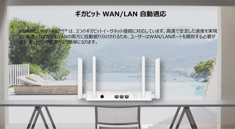 ファーウェイ、状況に応じて5GHz/2.4GHz帯域を自動切替するスマートルーター「WiFi AX2 NEW」